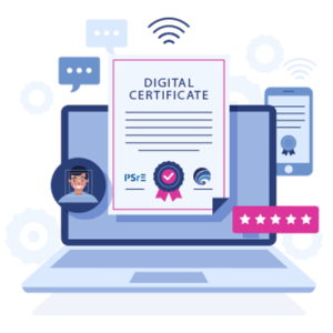 Sertifikat yang bersifat elektronik yang memuat Tanda Tangan Digital dan identitas yang menunjukkan status subjek hukum para pihak dalam Transaksi Elektronik yang dikeluarkan oleh Penyelenggara Sertifikasi Elektronik (PSrE).
